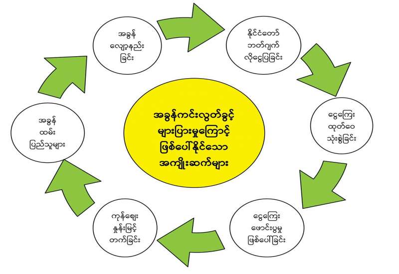 မိသားစုတစ်စု ဘဝရပ်တည်နိုင်ရေးအတွက် အခြေခံကုန်ကျစရိတ်များဖြစ်သော စားဝတ်နေရေး စရိတ်သာမက လူမှုရေး၊ ပညာရေး၊ ကျန်းမာရေး စရိတ်များကိုလည်း ကျခံသုံးစွဲရပါသည်။ ထိုအသုံးစရိတ်များအား ကျခံသုံးစွဲနိုင်ရန် မိသားစုအတွက် ပုံမှန်သုံးစွဲသည့်အသုံးစရိတ်နှင့် လိုက်ဖက်ညီသည့်ပုံမှန်ဝင်ငွေရှိရန် လိုအပ်ပါသည်။ အကယ်၍ ထိုမိသားစုအနေဖြင့် ပုံမှန်ဝင်ငွေမရှိခဲ့ပါက ကုန်ကျစရိတ်များအတွက် မည်သည့်နည်းလမ်းများဖြင့် ဖြေရှင်းလေ့ ရှိကြပါသနည်း။ ပုံမှန်ကျင့်သုံးသည့်နည်းလမ်းများမှာ အသုံးစရိတ်ကို ချွေတာသုံးစွဲခြင်း၊ ရင်းနှီးသူများထံမှ အတိုးမဲ့ သို့မဟုတ် အတိုးဖြင့်ချေး ငှားခြင်း၊ မိသားစုပိုင်ပစ္စည်းအချို့ကို ထုခွဲရောင်းချခြင်း စသည့်နည်းလမ်းများဖြင့်သာ ဖြေရှင်းကြမည်ဖြစ်ပါသည်။