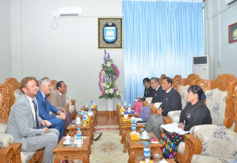 ပြည်ထောင်စုရှေ့နေချုပ် ဦးထွန်းထွန်းဦးသည် MyJustice မှ Team Leader Mr. Ross Clarke နှင့် အဖွဲ့ကို ယနေ့နံနက် ၁၁ နာရီတွင် နေပြည်တော်ရှိ ပြည်ထောင်စုရှေ့နေချုပ်ရုံး ဧည့်ခန်းမ၌ တွေ့ဆုံသည်။