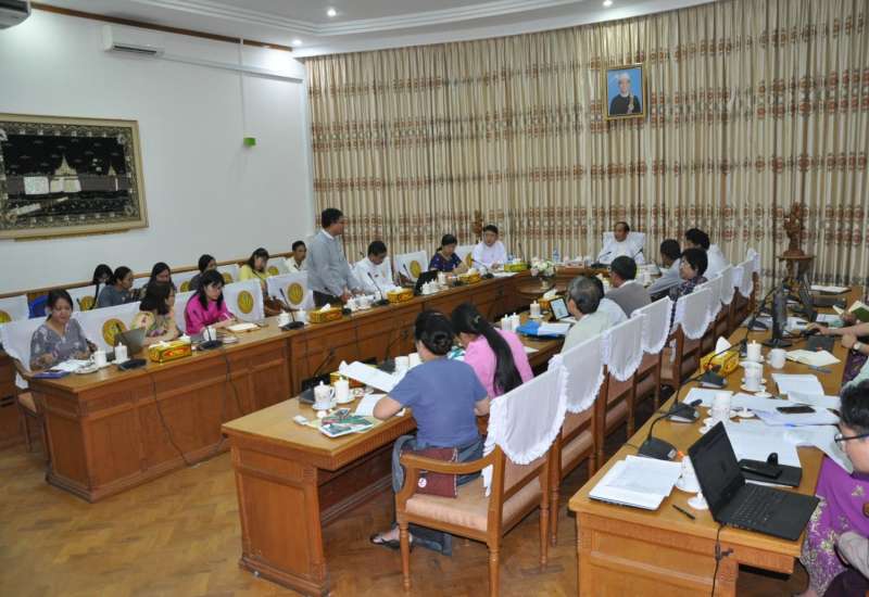 ပညာရေးဝန်ကြီးဌာန၏ တိုင်းရင်းသား ဘာသာစကား ဖွံ့ဖြိုးတိုးတက်ရေး အတွက် ဆောင်ရွက်မှု အခြေအနေများ တွေ့ဆုံရှင်း လင်းဆွေးနွေးပွဲကို မတ် ၅ ရက်က မော်လမြိုင်မြို့ရှိ တိုင်းရင်းသားလူမျိုးများရေးရာဝန်ကြီးဌာန ပြည်နယ်ညွှန်ကြားရေးမှူးရုံး အစည်း အဝေးခန်းမ၌ ကျင်းပသည်။